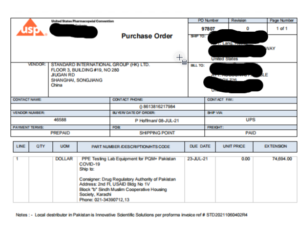 Client Name: U. S. PHARMACOPEIA (Drug Regulatory Authority of Pakistan)