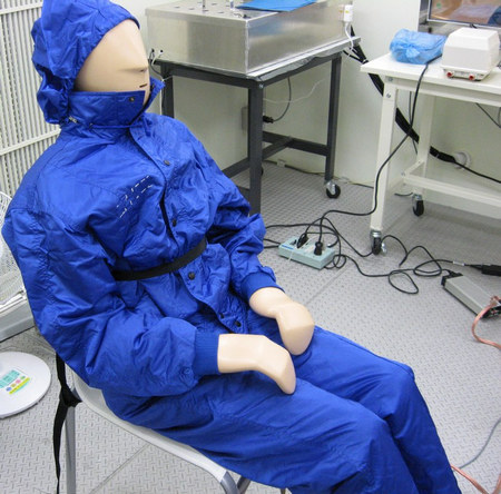 Thermal manikin evaluates protective clothing's thermal comfort performance.