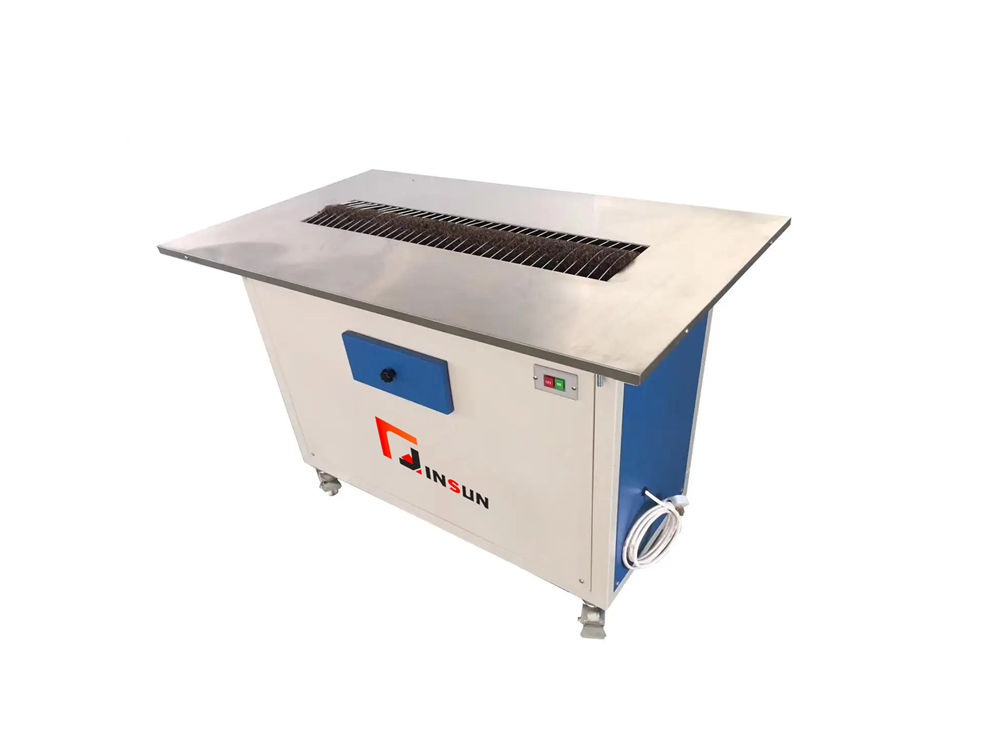 The machine adopts simultaneous running of centrifugal fan and machine brush roll,clean up residues stained with knitting,wool, artificial wool brushing garment so as tobrush up residues such as undercoat, flyings, knitting wool end etc.on the garmentrapidly and easily before packaging and delivery of your manufactured garments so as toexempt from traditional mode of viscose gluing by hand, largely reduce labor intensity andproduction cost, enable to guarantee appearance quality of your fashion products andupgrade quality and price of your apparel.