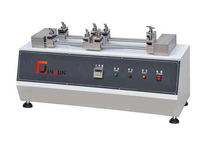 The sample is placed on the clamp and the position of the left and right clamping device makes the test sample spacing meet the standard requirements. Set the test cycle numbers and start the test. The Decelerator will drive the middle clamp holder to do the reciprocating movement. The left and right clamp holders are connected with a 3kg load.