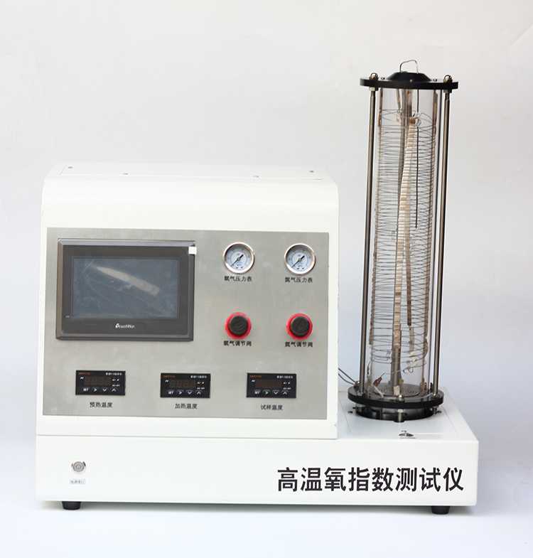 The digital oxygen index tester is designed and de-veloped according to ISO4589-3 (Elevated-temperature test) and British Naval Engi-neering Standard NES 715. Based on the general intelligent oxygen index instrument,the high temperature oxygen index tester adds a electric-heating device at the position of the combustion cylinder to preheat the mixed gas and test the ignition temperature of the different materials at a certain oxygen concentration.