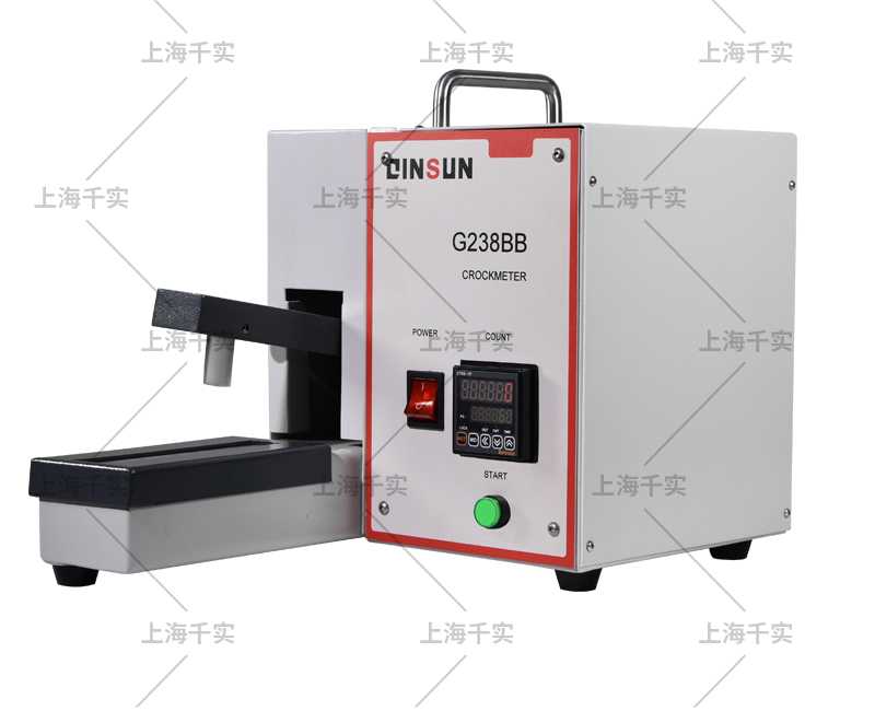 Rotate the knob to rub the friction head with the white cotton cloth against the specimen in reciprocation motion with specified strokes. After ten times of friction between the white cloth and the specimen, assess the color transfer to the white cloth with a gray scale and the stability of dyed fabric specimen or surface coating so as to provide reference data for material assessing and selection.