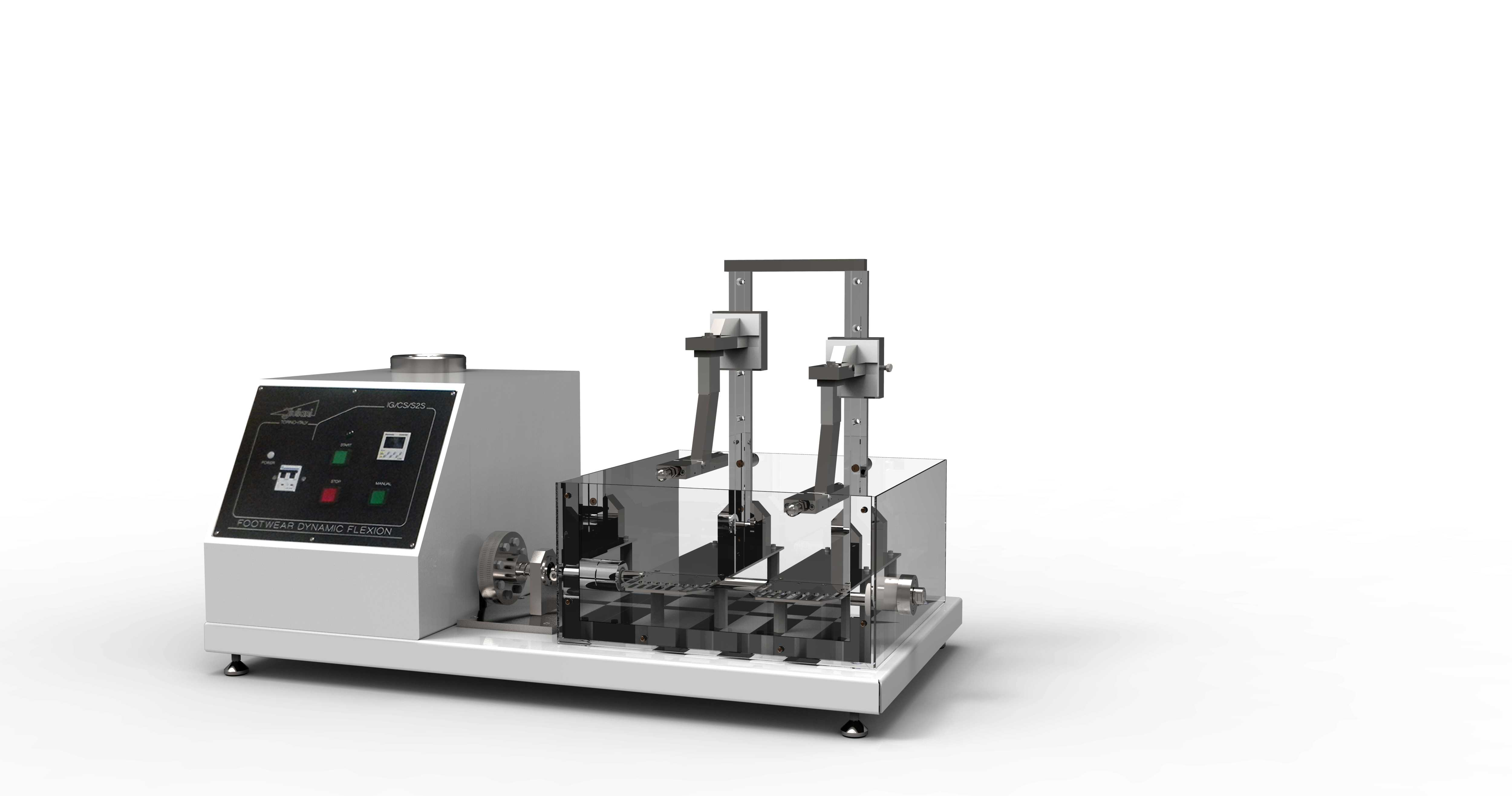 The Footwear Flection Tester is designed to assess the flexing endurance of overall footwear in wet and dry conditions.