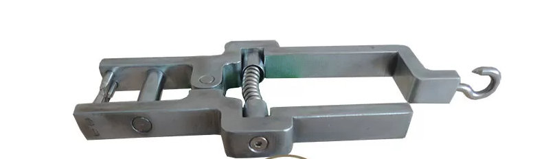 The teeth shall be mounted so as to pivot about a point (50 ± 1) mm from the rear most pair of teeth and positioned so that when closed the centre lines of the two pairs of teeth are parallel to each other.