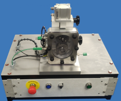Horizontal movement in the direction perpendicular to the upper shaft axis and is resisted by a strain gauge transducer. This gives measurements of the tangential force in the contact, which is displayed as friction force on the control unit.