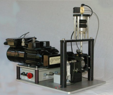 The STD-TE 54 Mini Traction Machine has two motors, one to provide the input power and one to absorb the transmitted power. The design is of the “over-hung” roller type, with test rollers fitted over-hung on the end of the machine test spindles. Loading is via servo controlled pneumatic bellows, with force transducer feedback.