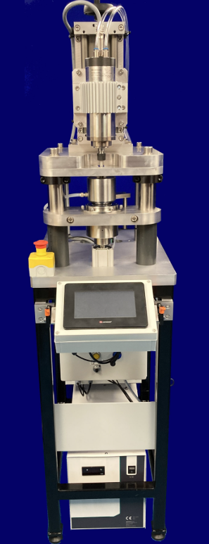 The STD-RCF 6 machine is designed to run the standard three ball on rod rolling contact fatigue test geometry, in which three balls, separated by a retainer, are loaded against a rotating rod specimen, by applying an axial force across two taper bearing cups, mounted above and below the three balls.