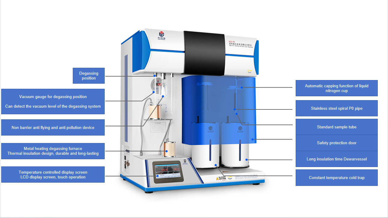 ◆ Temperature-programmed degassing: Software-controlled temperature programming, room temperature-400°C, accuracy better than 0.1°C; (customizable for special requirements)