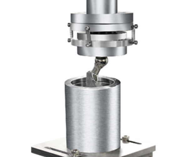The Femoral Stem Fatigue Testing Machine is a device used to evaluate the fatigue performance and durability of artificial femoral stems under repeated mechanical loading.