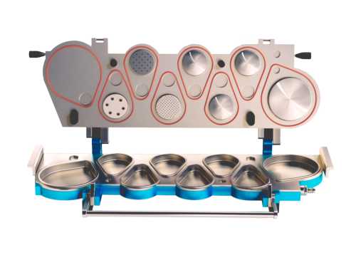 5. Removable set of collection cups, hinged removable lid, and O-ring free inlet connections.