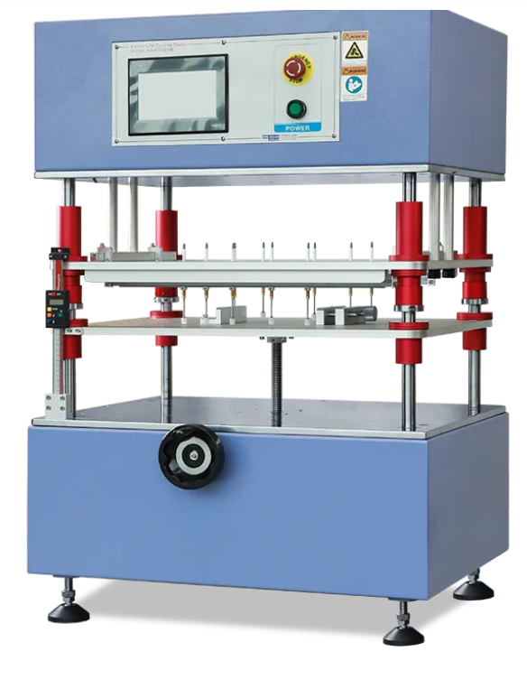 The tester typically consists of a force sensor (load cell) attached to a probe or indenter tip. The tip is designed to contact the surface of the button being tested. The tester applies a controlled force to the button, usually by moving the probe downwards at a consistent speed or applying a gradually increasing force. The instrument monitors the force being applied. A mechanism or sensor detects when the button is activated. This activation can be defined in several ways, such as when an electrical contact is made, when a specific displacement or travel is reached, or when a distinct change in the force-displacement curve (like the "click" force in a tactile switch) is detected by the accompanying software.